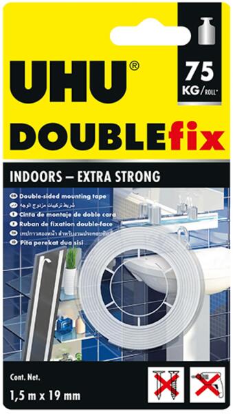 Extraerős kétoldalú szerelési ragasztószalag. Tükrök, tartók, horgok, polcok, elemek, dísztárgyak, dekorációs profilok és még sok más gyors és tartós rögzítéséhez. Sima felületre, például fémre, csempére, műanyagra, üvegre és festett fára. Extraerős, akár 75 kg-os teherbírás (teljes szalag teherbírása). Fehér színű, vízálló.