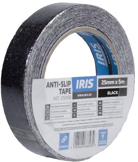 Iris fekete 25mmx5m csúszásgátló szalag Durva, érdes felülettel rendelkező csúszásgátló ragasztószalag Ideális lehet minden olyan felületre (lépcsők, rámpák), ahol csökkenteni kell a síkosságot Csiszolóvászonra hasonlító felület A maximális tapadás érdekében, felhelyezés előtt alaposan tisztítsa és zsírtalanítsa a felületet