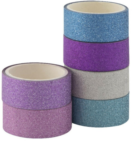 Washi tape színes ragasztószalag 2,5m 6 db-os -2 A Washi tape színes ragasztószalag készlet ideális választás a kreatív hobbi szerelmeseinek. Egy csomagban 6 darab csillogó ragasztószalag található, mindegyikük 2,5 méter hosszú. A szalagok színes, csillogó megjelenésükkel garantáltan feldobják bármelyik alkotást. A Washi tape szalagot használhatod scrapbook készítéshez,