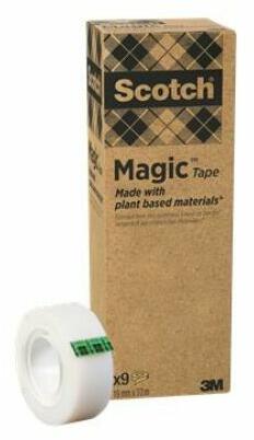 A környezetbarát Scotch® Magic ragasztószalag 53%-ban megújuló anyagú, ragasztója növényi alapú, csomagolása 100% újrahasznosított papír, gurigája újrahasznosított műanyag. A Scotch® A Greener Choice környezetbarát ragasztószalag az eredeti Scotch® Magic ragasztószalag környezetbarátabb változata, amely ugyanolyan kiváló teljesítményt kínál. -a Scotch® Magic raga