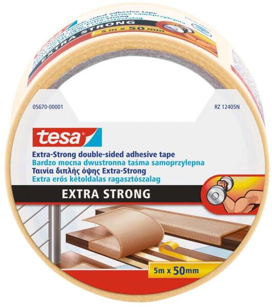 Tesa 50mmx5m extra erős kétoldalas ragasztószalag- Minden szőnyeg és PVC padlóburkolathoz használható - Extraerős kétoldalú tapadás - Padlófűtéses helyiségekben is alkalmazható - Kézzel téphető - Méret: 50 mm x 5 m