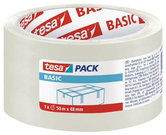 Csomagolószalag, 48 mm x 50 m, TESA "Basic", átlátszó Sokoldalú csomagolószalag, mely bármilyen könnyebb postai és egyéb csomag lezárására alkalmas! -könnyen letekerhető -UV- és öregedésálló -valamennyi tesa® kézi adagolóval használható