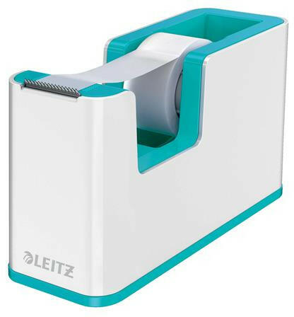 Ragasztószalag-adagoló, asztali, feltöltött, LEITZ "Wow", fehér-jégkék