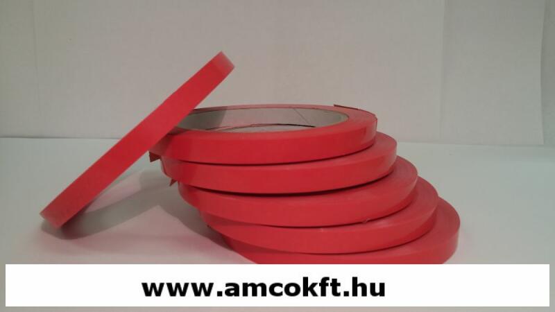 Ragasztószalag tasakzáró géphez Termék jellemzők: Anyag: PVC Szín: piros Szalag szélesség: 10 mm Szalag hoszzúság: 66 m Tömeg: 50 g/tekercs