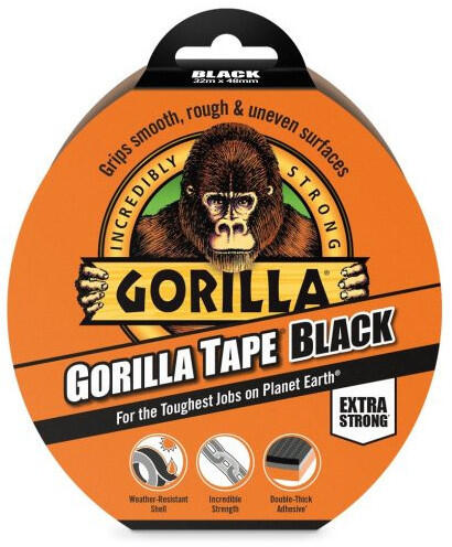 GORILLA Ragasztószalag fekete extra erős 48 mm x 32 m Gorilla Tape Ragasztószalag „A földkerekség legkeményebb munkáihoz48 mm x 32mVíz és időjárásálló. Elképesztően erős tapadás, durva, egyenetlen felületeken is. Strapabíró minden időjárási helyzetben, ellenáll a nedvességnek, UV sugárzásnak és a szélsőséges hőmérsékletnek. Kézzel téphető. Nem hagy ragasztó