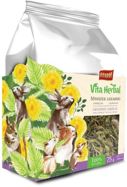 Kiegészítő eledel kisállatok számára. Összetevők: szárított gyermekláncfű. Analitikai összetevők: Nyersfehérje (Kjeldahl-módszer) min. 2,6%, nyerszsír min. 0,01%, Nyersrost max. 15,5%, nyershamu max. 6,9%, Nedvesség max. 12%. Etetési javaslat: jutalomfalatként adható az alapélelmiszer kiegészítéseként. Mindig biztosítson kedvencének bőségesen tiszta, friss vizet. Kedv
