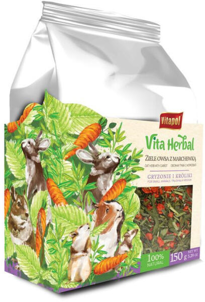 Kiegészítő eledel kisállatok számára. Összetevők: zabfű, szárított sárgarépa. Analitikai összetevők: Nyersfehérje (Kjeldahl-módszer) min. 8,5%, Nyerszsír min. 0,1%, Nyersrost max. 20,91%, Nyershamu max. 7,99%, Nedvesség max. 12%. Etetési javaslat: jutalomfalatként adható az alapélelmiszer kiegészítéseként. Mindig biztosítson kedvencének bőségesen tiszta, friss vizet.
