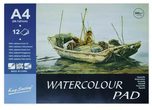 Termékjellemzők: - Akvarell Blokk. - Mérete: A/4. - 12 ív. - Súlya: 300 gramm. - Anyag: 100 % cellulóz. - Hidegen Préselt Papír.