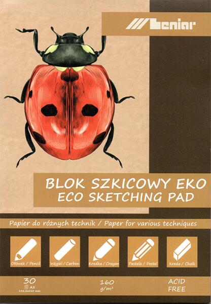 Leniar Katicabogár vázlatfüzet (160 g/m2) - különböző formátumok A Leniar Katicabogár vázlatfüzet ideális papírt tartalmaz vázlatkészítéshez és rajzoláshoz számos technikával, ceruzával, szénnel, zsírkrétával, pasztellel, száraz pasztellel, krétával... 30 lap szürkésbarna ökológiai papír, enyhén szemcsés textúrával. A5 - A4 - A3 méretben kapható