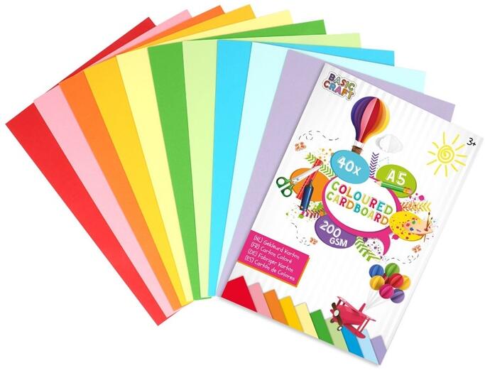 Színes kartonpapír A5 - szett 40 db Cserélje fel a hagyományos színes papírt kartonra! Ezek a színes kartonpapírok A5 formátumban kiváló anyagok a kreatívkodáshoz mind kis és nagy művészek számára. Dekorációs celokra alkalmas - festés, nyírás, ragasztás, scrapbooking, decoupage vagy cardmaking. Nagyszeű lehet képeslapok, albumok, könyvborítók, meghívók, esküvői meg