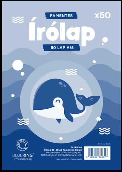 ÍRÓLAP 20-50 A5 FAMENTES 80GR 50LAP BLUERING Óvodai és iskolai felhasználásra javasolt írólap famentes és félfamentes alapanyagból. Katalóguskód: 21692
