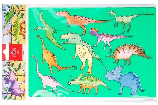 Műanyag rajzolósablon dinó mintás. PVC tasakban akasztófüllel.