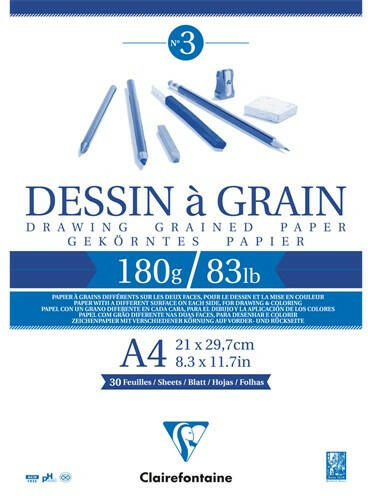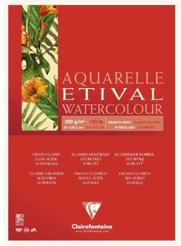 Művészeti rajztömb Clairefontaine Etival Classic Grain A/4 10 lap 300g ragasztott fehér szemcsés Fehér szemcsés, ragasztott művészeti rajztömb A/4, 10 lapos 21x29,7 cm Alapanyag súlya: 300 g/m2 Kezdőknek, alkalmi felhasználóknak kiváló papír Egyedülálló erezet a szabályos, festett felületért A szemcse finoman kiemeli az akvarellmunkát