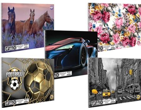 275 g-os, fényes fóliázott, mintás borító. 170 g-os fehér belív. 30 lapos, szimpla spirálozás.