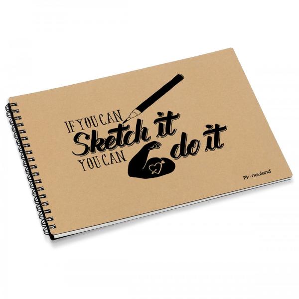 Vázlatfüzet fekvő formátumban, 50 lap 150g/ m2 fehér papír, spirálozva, nyomtatott fedlap M éret: 22.5 x 16.2 cm A borítón szereplő felirat/grafika változhat. Az attraktív Neuland vázlatfüzet ideális mindennapi használatra, ötletek, vázlatok, koncepciók lerajzolására, egy-egy inspriláló gondolat rögzítésére.