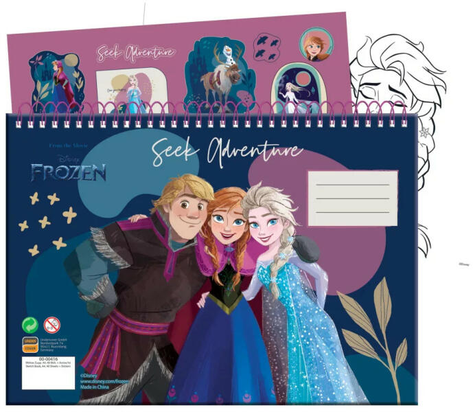 Disney Frozen, Jégvarázs A/4 spirál vázlatfüzet 40 lapos 1 ív matricával és 3 db színezhető képpel! Méret: A/4 23x33cm