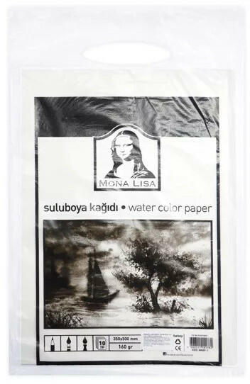 Mona Lisa akvarell papír 35x50 cm, 160 g, 10 ív/cs. Ideális az akriltechnikához, de ajánlható tempera– és olajfestéshez egyaránt. A termék füllel ellátott nejlon zacskóba van csomagolva, így kényelmesen és praktikusan szállítható.