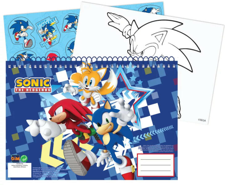 Sonic, the Hedgehog, Sonic a sündisznó spirál vázlatfüzet, 40 lapos 1 ív matricával és 3 db színezhető képpel! Méret: A/4 (23x33cm)