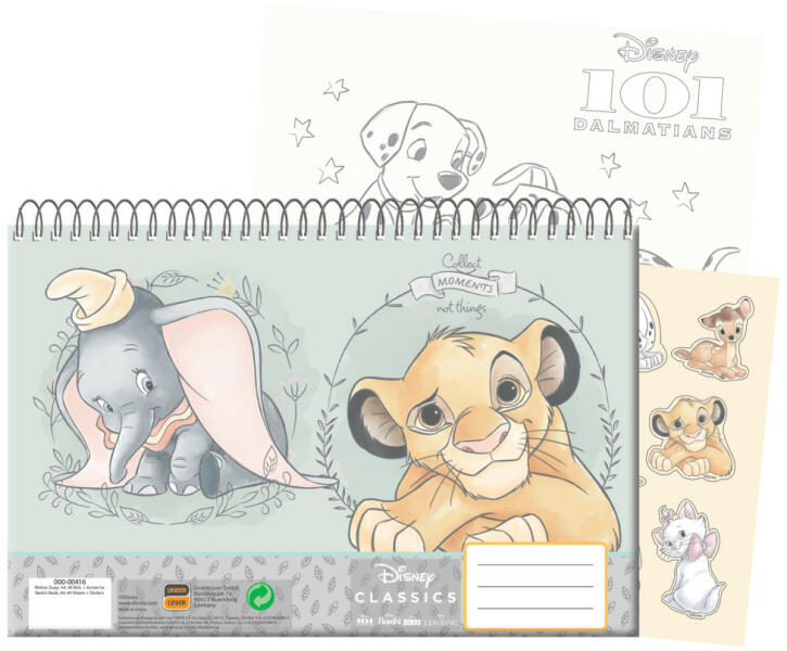 Disney Classic spirál vázlatfüzet, 40 lapos 1 ív matricával és 3 db színezhető képpel! Méret: A/4 (23x33cm)