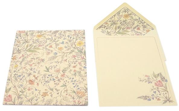 Díszborítékos levélpapír szett tíz krémszínű lap tíz krémszínű bélelt borítékkal tavaszi virágmintával, aranyporral. A papír tökéletes mind golyóstollal, mind töltőtollal való íráshoz. 95 g/m2 tömegű papír.