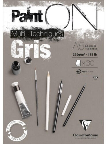 Művészeti rajztömb Clairefontaine PaintON A/5 30 lap 250g ragasztott szürke enyhén szemcsés Ragasztott, szürke, enyhén szemcsés művészeti rajztömb A/5, 30 lapos 14,8x21 cm Alapanyag súlya: 250 g/m2 Népszerű, csodálatos szürke szín Finoman durva erezet Mélységet, karaktert ad a világos színeknek