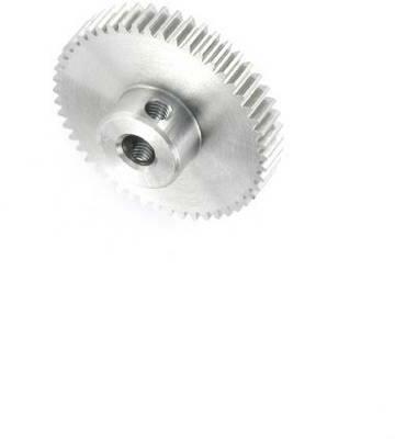 Homlokfogaskerék acélból modul 0,5 A kerékagyakban két M3 belsőmenetes furat van, a veleszállított hernyócsavarral erőátvitelt biztosító kapcsolat hozható létre a fogaskerék és a tengely között. Műszaki adatok: Anyag: acél · Fogak száma: 50 · Fogszélesség: 4 mm · Furat: 4 mm · Kerékagy hossz: 5 mm · Kerékagy Ø: 10 mm · Modul: 0,5 · Átmérő: 26 mm