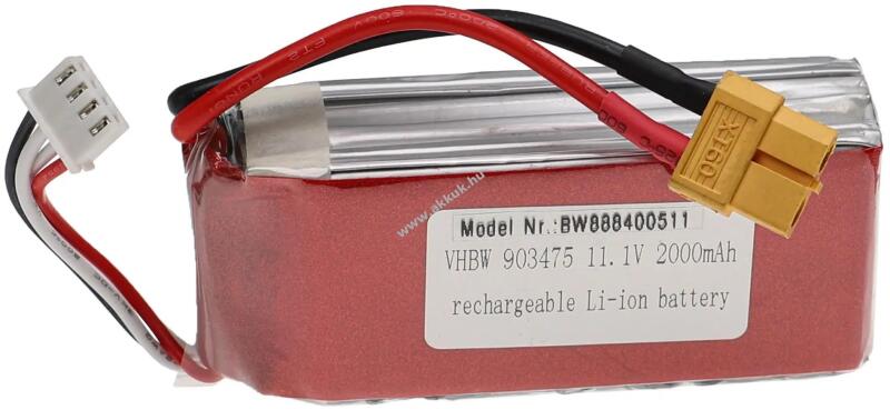 Feszültség: 11.1V - Teljesítmény: 2000mAh - Típus: Li-Po - Méret: 8.6cm x 3.4cm x 2.8cm