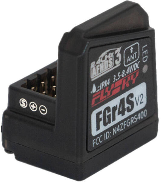 FlySky vevő FGR4S, 4 csatorna AFHDS 3 FlySky FGR4S vevő A FlySky FGR4S egy 4 csatornás vevő, amely a 2,4 GHz-es sávban működik, és körülbelül 200 méteres hatótávolsággal rendelkezik. Beépített antennával rendelkezik, és támogatja a PWM, i-BUS és PPM adatinterfészeket. AFHDS 3-at használ és támogatja az online frissítéseket. Kompakt méretei 25,5 x 22 x 17,3 mm-esek, töm