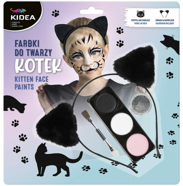 KIDEA - Arcfestékek MACSKA - 3 szín + ecset és hajpánt (készlet)