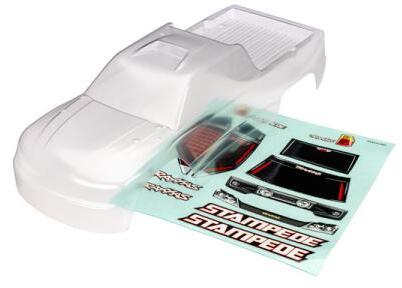 Traxxas karosszéria Stampede átlátszó (csavarok nélkül), festést igényel. A Stampede VXL-hez is alkalmas.