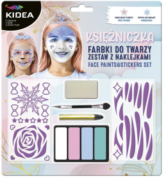 KIDEA - Arcfestékek HERCEGNŐ - 4 szín + ecset és matricák (készlet)