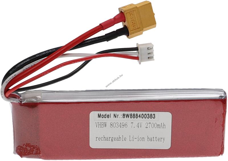 Feszültség: 7.4V - Teljesítmény: 2700mAh - Típus: Li-Po - Méret: 10.5cm x 3.4cm x 1.5cm