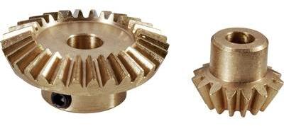 Sárgaréz kúpkerék készlet, 9 / 23,5 mm, 15/45 fog A kúpkerékbe hernyócsavar van becsavarva, rögzítés céljából. Műszaki adatok: ATT. LOV. MODULE_TYPE_MODELLING: 0.5 · Anyag: sárgaréz · Fogak száma: 15,45 · Furat átmérő: 3 mm, 4 mm · Külső Ø: 9 mm, 23.5 mm · Külső Ø: 9 / 23,5 mm · Modul: 0,5 · Tartalom: 1 készlet · Áttétel: 3:1 Figyelem: A kúpkerekek csak páro