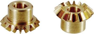 Sárgaréz kúpkerekek, 23,5 mm, 30 fog Ütőfogas marási eljárással előállítva. Műszaki adatok: ATT. NUM. COG_WITH: 30 mm · Anyag: sárgaréz · Fogak száma: 30 · Külső Ø: 23.5 mm · Külső Ø: 23,5 mm · Modul: 0,75 · Tartalom: 1 pár · Áttétel: 1:1 Figyelem: A kúpkerekek csak párosával futnak a megadott áttételi viszonyokkal.