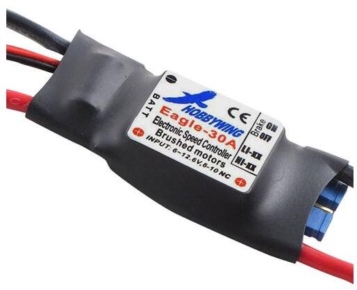 Eagle-30A Eagle-30A speed regulator dedicated to current (DC) powered aircraft models. It features a constant current of 30A and a maximum peak current of up to 40A, providing a stable and efficient power supply. Compatible with NiXX (4-10 cells) and LiXX (2-3 cells) batteries, it offers a wide range of applications for various models. Equipped with a built-in BEC with 5V and 1A current, it allows