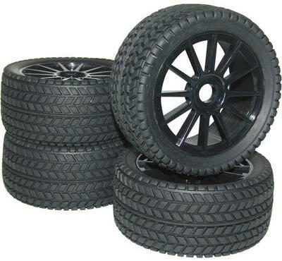 1:8 komplett kerekek, Buggy 10-Star Street 4 darabos készlet Betéttel Menetkészre ragasztva Műszaki adatok: Abroncs szélesség: 49 mm · Abroncs Ø: 106 mm · Alkalmas modelltípus: Buggy · Alkalmazási cél: Tuning · Felni design: 10 küllős · Felni színe: Fekete · Felni-vivő: 17 mm 6-szög · Gumiabroncs típus/profil: Street · Méretarány: 1:8 · RC modellautó abroncs típus: Kom