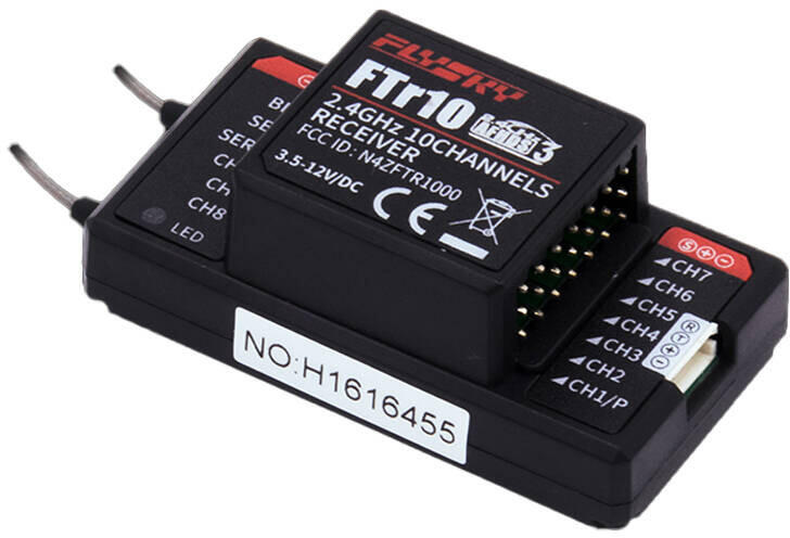 FlySky vevő FTR10, 10 csatornás AFHDS 3 FlySky FTR10 vevő A FlySky FTR10 egy fejlett vevő, amely 10 PWM csatornát kínál. A 2,4 GHz-es sávban működik, körülbelül 3500 méteres hatótávolsággal, így nagy távolságokon is stabil jelátvitelt biztosít. Támogatja az AFHDS 3 és az online frissítéseket, valamint támogatja az i-BUS, S-BUS, PPM, PWM és UART adatinterfészeket a soko