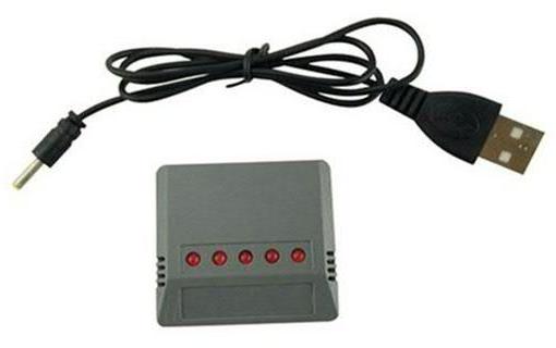 Ballanszos akkumulátor töltő Syma X5HW akkumulátorhoz Egyszerre 5 db akku tölthető, töltési idő kb. 40 perc, ez idő alatt az összes rácsatlakoztatott akku feltöltődik.