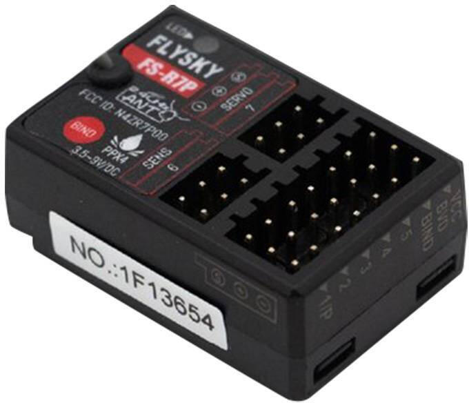FlySky FS-R7P vevő A 7 csatornás FS-R7P vevő 2,4 GHz-es frekvencián működik. Akár 300 méteres felszíni hatótávolsággal is kitűnik. Méretei mindössze 35 x 23,3 x 13,3 mm, súlya pedig mindössze 8 g. Az FS-G4P és FS-G7P adókhoz készült, és a stabil ANT protokollt használja. Támogatja az RSSI teljesítményjelzőt és PPX4 szintű vízállóságot biztosít. GyártóFlySkyModel