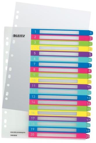 Többször használható regiszter élénk színkombinációkban. Egyénileg tervezhető tárgymutató a www. leitz. com/easyprint weboldalon keresztül.
