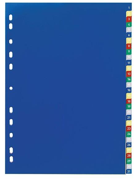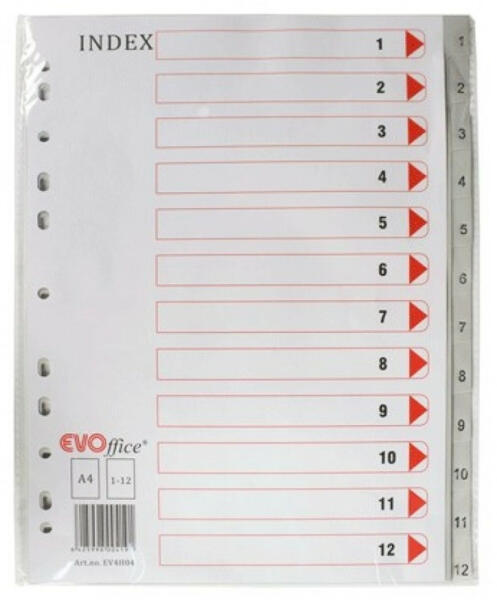 Minőségi PP alapanyagból készült regiszter iratok kategorizálásához, praktikus rendszerezéséhez. 11 lefűzűlyukkal, A4 méretű iratokhoz. Katalóguskód: 20134