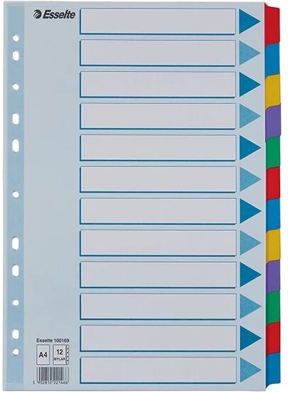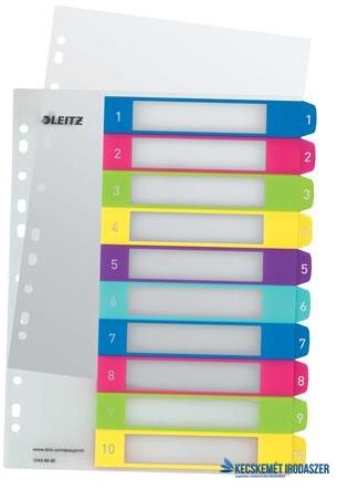 Regiszter ESSELTE maxi Elválasztólap. Megerősített hagyományos, 11-lyukú lefűzőrész. Méret: A/4+ Regiszterek száma: 10 színes szélű fül. Alapanyag: 0,12 mm vastag PP.