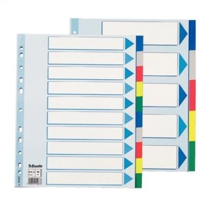 Elválasztólap visszafogott színkombinációkban. Nagyméretű téglalapok az előlapon a tartalom feltüntetésére. Az A4+ méretű elválasztólapok szélesebbek a lefűzhető tasakoknál, így segítségükkel az iratrendezőbe lefűzött tasakok is könnyen rendszerezhetők. Megerősített lefűzőrész az előlapon10 színes fül a könnyű rendszerezéshezHagyományos, 11-lyukú lefűzőr