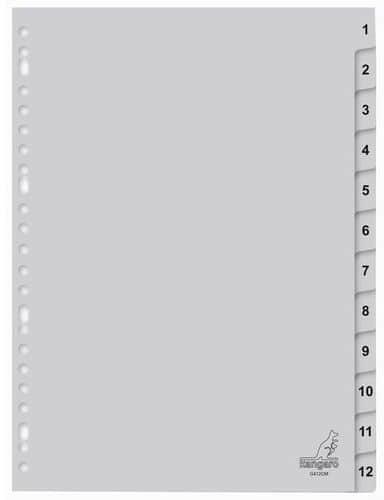 Elválasztólap PP Durable A/4 1-12-ig áttetsző PP alapanyagú elválasztólap méret: A/4 szín:áttetsző 1-12 részes index szett, extra nyomtatott betétlapokkal, Január-December