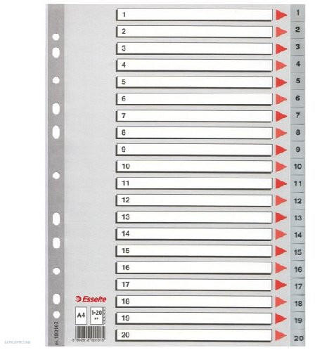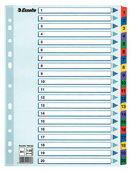 - a minőségi műanyag alapanyagból készült elválasztólapok az iratok hatékonyabb és időtállóbb rendszerezését és visszakeresését szolgálják - 11 lefűzőlyukkal rendelkeznek - a maxi méretű elválasztólapok regiszter része szélesebb, mint a standard lefűzhető tasakok, így segítségükkel az iratrendezőbe lefűzött tasakok is könnyen rendszerezhetők - méret: A4