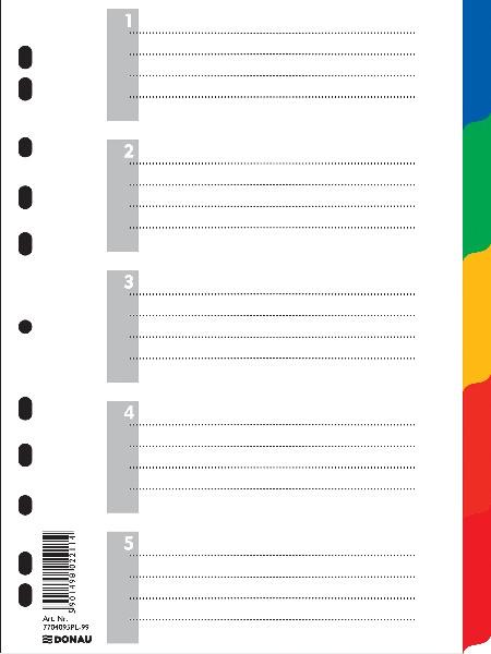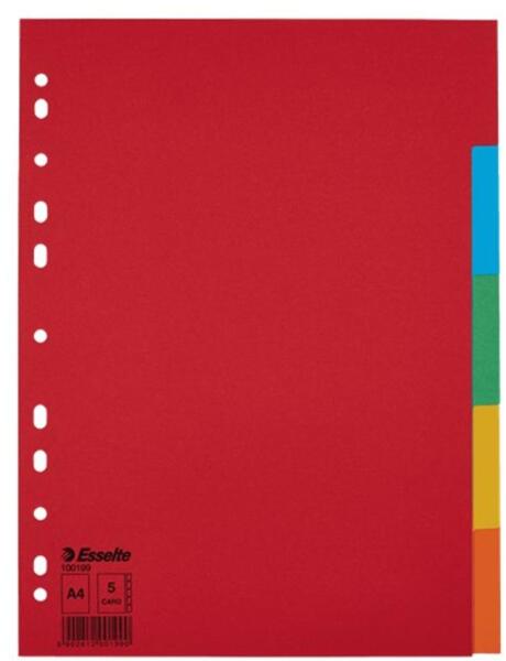 Tartós elválasztólap élénk színkombinációkban. Újrahasznosított karton alapanyag. 5 színes fül a könnyű rendszerezéshez. Hagyományos, 11-lyukú lefűzőrész. A4 formátum. Erős, 160 g-os karton alapanyag. Blue Angel minősített, újrahasznosított karton alapanyag.