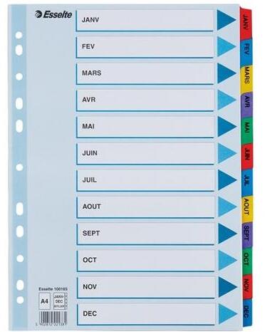 Tartós regiszter élénk színkombinációkban. Nagyméretű téglalapok az előlapon a tartalom feltüntetésére. Erős, tartós, laminálással megerősített regiszter fülek Megerősített lefűzőrész az előlapon Jan-Dec felirattal rendelkező regiszter fülek a dokumentumok gyors eléréséhez Hagyományos, 11-lyukú lefűzőrész A4 méret Erős, 160 g-os karton alapanyag