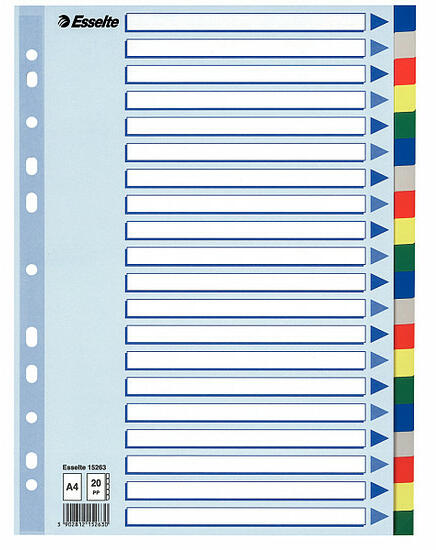 Minőségi műanyag alapanyagból készült elválasztólapok, az iratok hatékonyabb és időállóbb rendszerezése és kikeresése érdekében. 11 lefűzőlyukkal rendelkezik.