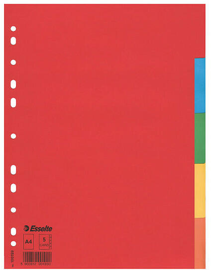 - lefűzött dokumentumok kategorizálására- színes- újrahasznosított, 250 g/m2 kartonból készült- mikroperforált fülek- 4 lefűzőlyuk- méret: 235x300 mm