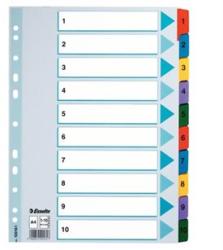 Regiszter, karton, A4, DONAU, vegyes színek 100 darab- lefűzött dokumentumok kategorizálására - színes elválasztólapok - újrahasznosított, 250 g/m2 kartonból készült - 100 db/csomag - 4 lefűzőlyuk - méret: 235x300 mm